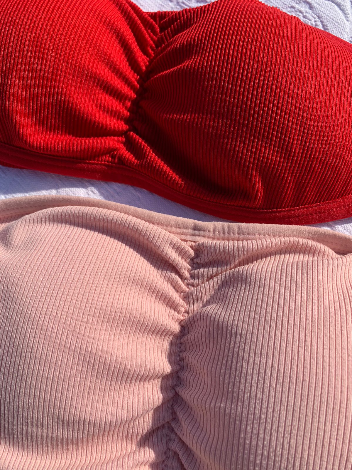 Soft seamless strapless tube bra for women. Sexy, comfortable, and perfect for crop-top styling. Available in Red & Pink, Free Size.